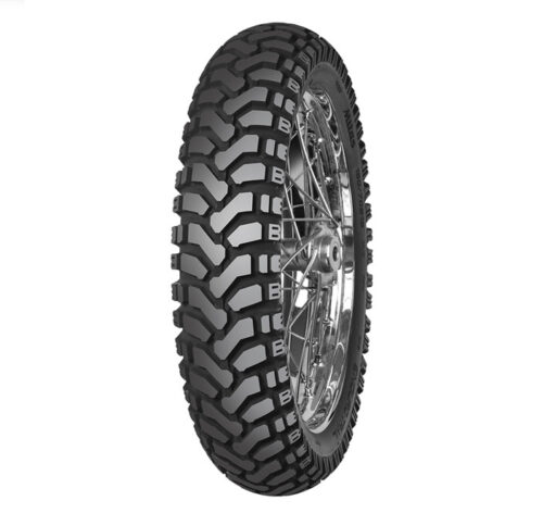 Diseño de banda de rodamiento moderno de neumatico tanto para ruedas delanteras como traseras de motocicletas de aventura. Excelente rendimiento en carreteras y en terrenos duros menos dificiles.